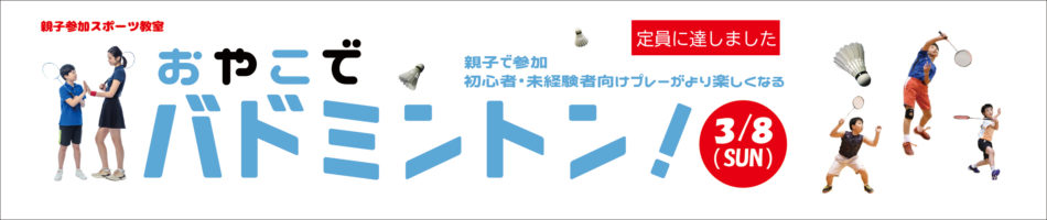 【親子参加スポーツ教室「おやこでバドミントン!」】 親子で参加ができ、初心者・未経験者でもプレーがより楽しくなる教室です。 バドミントンをやってみたい! 体を動かしたい!そんなファミリーや初心者向けの親子イ …