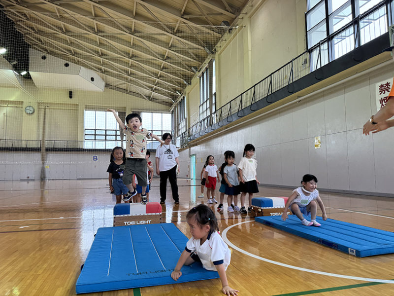 7月16日のきっずジムは!! 7月16日(水)第8回目のきっずジムは準備体操後、ラダーや跳び箱を使った「サーキット週間その2」を行いました。次回のきっずジムは8月6日(水)になります。(引き続き熱中症対策として水筒は多めに必ず持参してください。) 投稿日:2025年07月08日 18:06