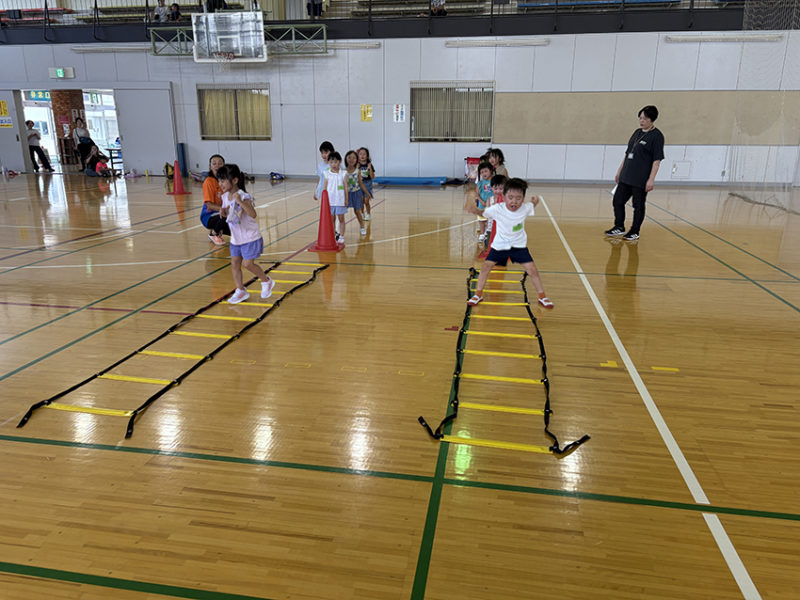 8月6日のきっずジムは!! 8月6日のきっずジムは!! 8月16日(水)第9回目のきっずジムは、だるまさんがころんだとボールを使った鬼ごっこで楽しく遊び、その後にラダー、マット、ジャンプのサーキットトレーニングを行いました。次回のきっずジムは8月20日(水)になります。(引き続き熱中症対策として水筒は多めに必ず持参してください。) 投稿日:2025年08月07日 15:05
